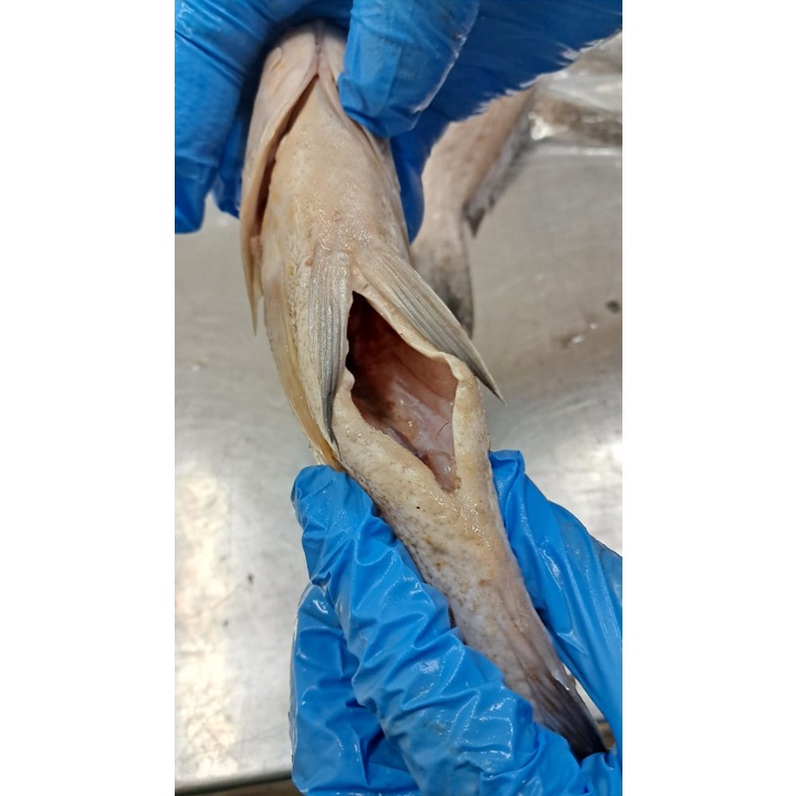 Ikan kerapu WGGS ( Whole Gilled Gutted Scaled ), semua bagian sisik,insang dan jeroan sudah dibersihkan atau disingkirkan, ukuran berat 1 kg