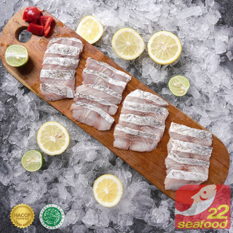 Daging irisan beku / slice meat ikan kakap putih Shortplate Barramundi ukuran 200 gram